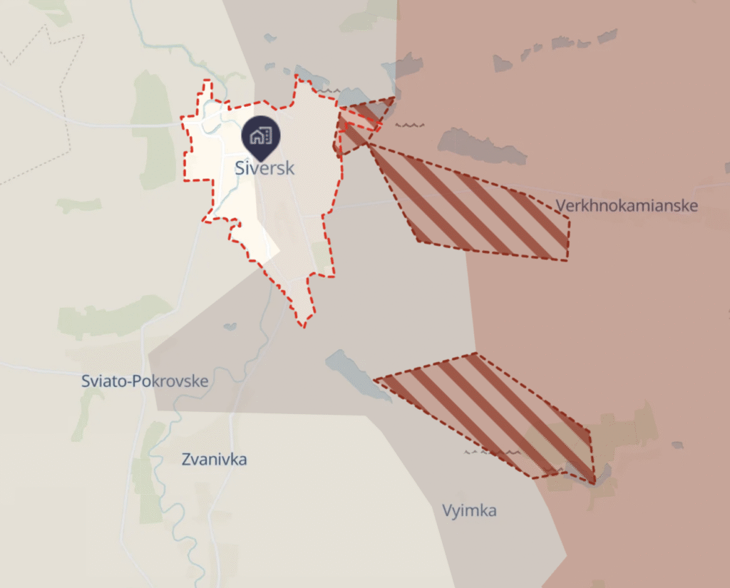 Междувременно депутатката Мариана Безуглая заяви във Върховната рада, че Покровск вече е фактически превзет, а съседният Мирноград е напълно обкръжен. Главнокомандващият на украинските въоръжени сили Александър Сирски твърди, че Покровск не е загубен и че неговата отбрана и тази на Мирноград възпират по-нататъшното настъпление на руската армия. Проукраинският военен Телеграм канал Deep State в същото време съобщи, че руските войски напредват сериозно близо до Северск в Донецка област. Според картата на Deep State по-голямата част от града е в сивата зона.